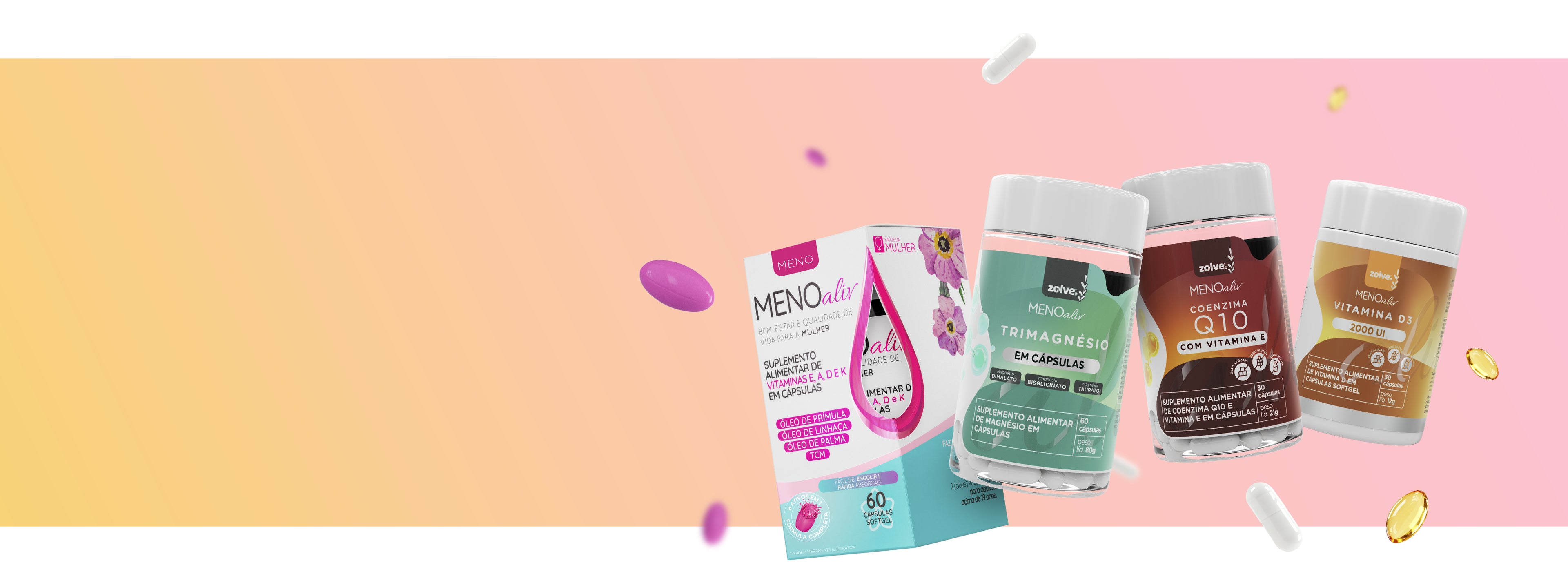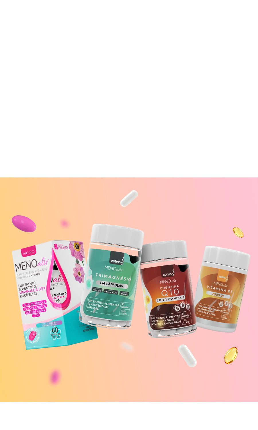 Meno Aliv e um suplemento alimentar com ativos naturais em cápsulas Softgel, com óleo de Prímula, Linhaça, Palma, TCM e vitaminas A, D, E e K.